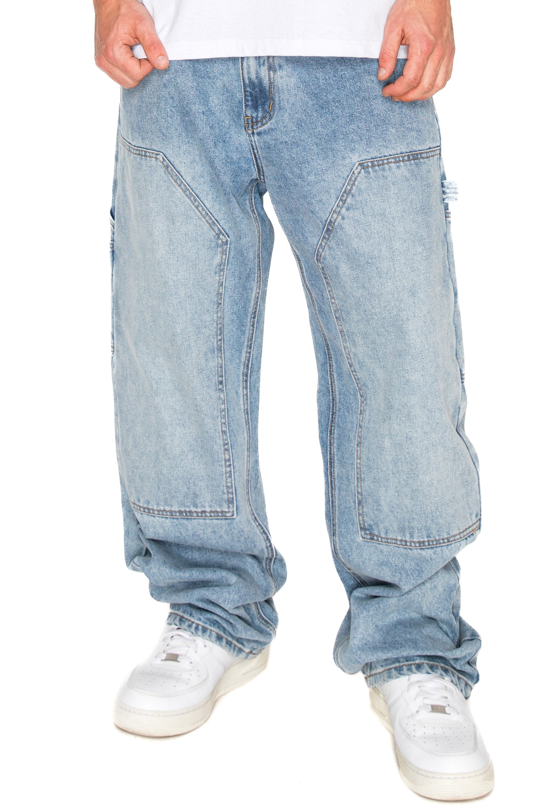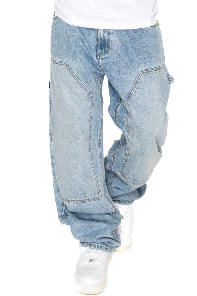 Street-ready and built to last. These baggy jeans are made from durable washed denim, featuring carpenter pockets and a reinforced double-knee front for a classic workwear look with everyday comfort.
