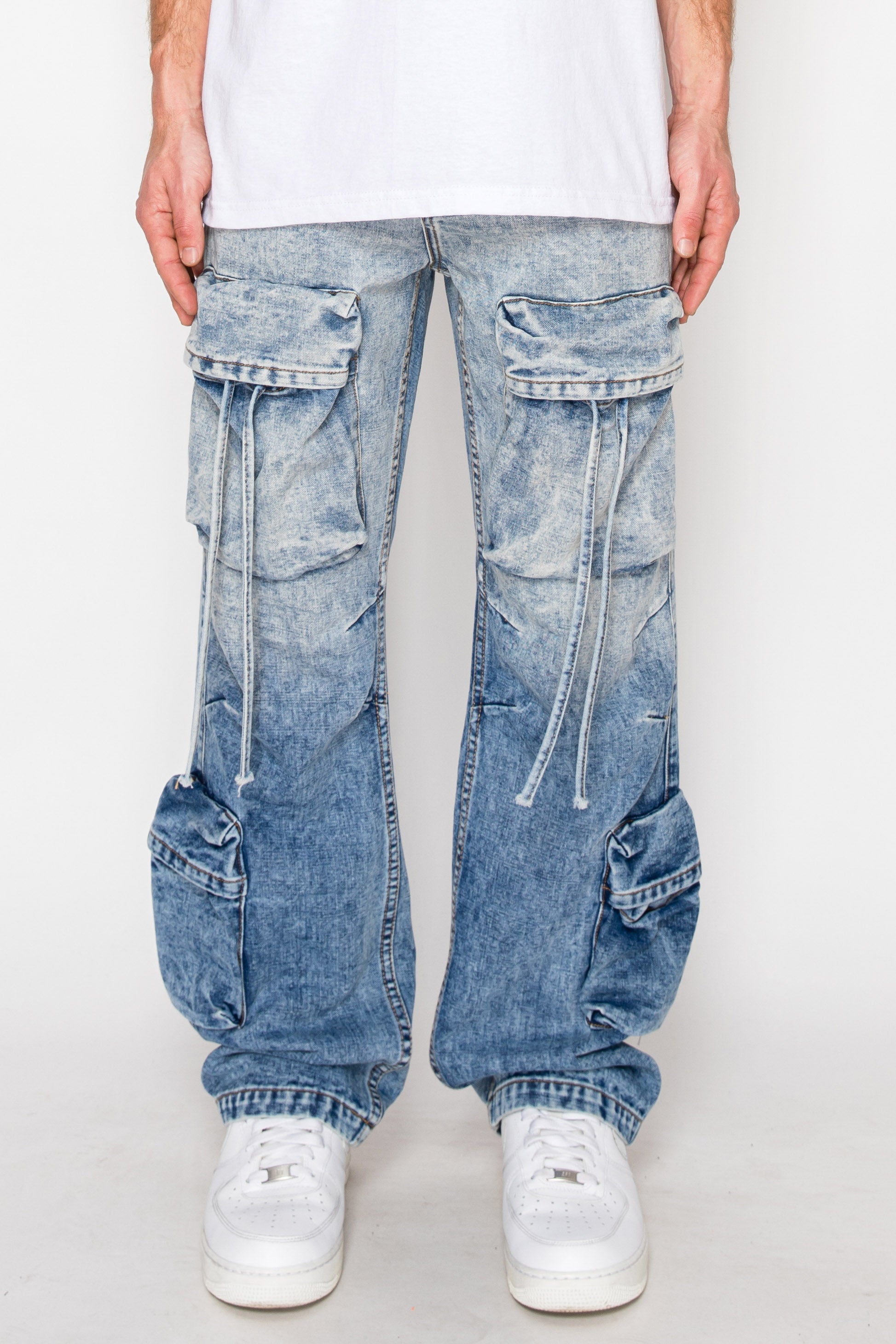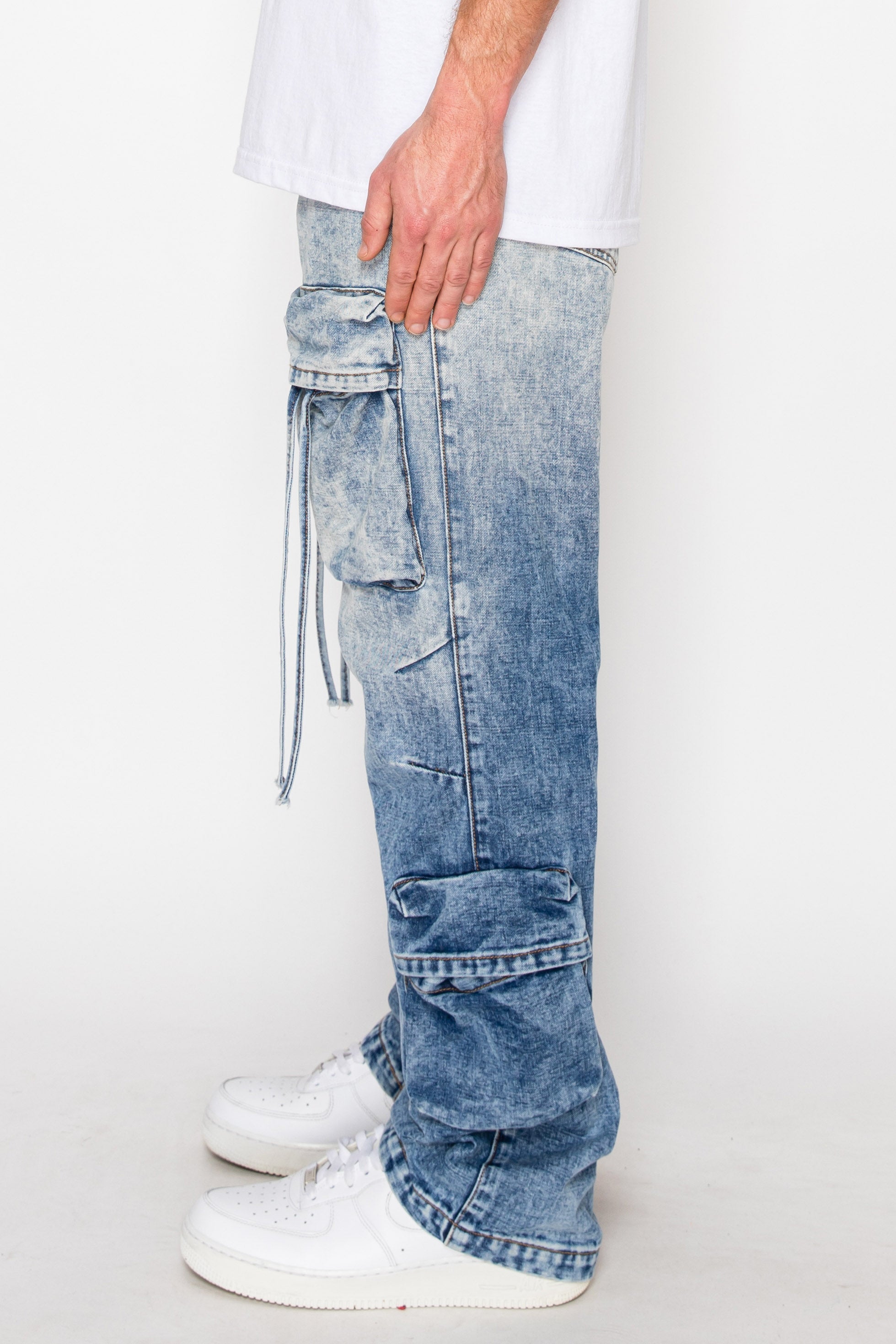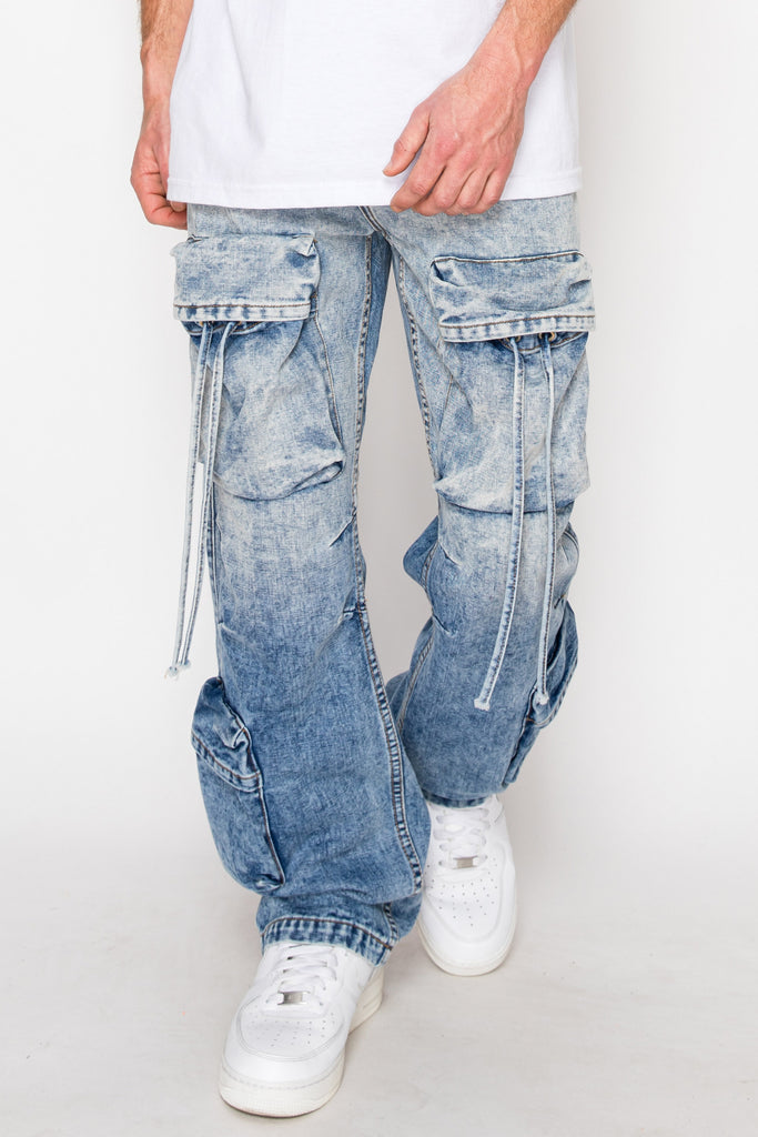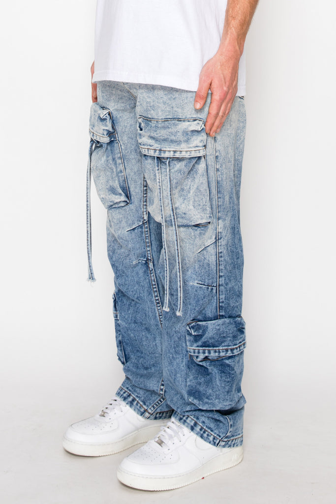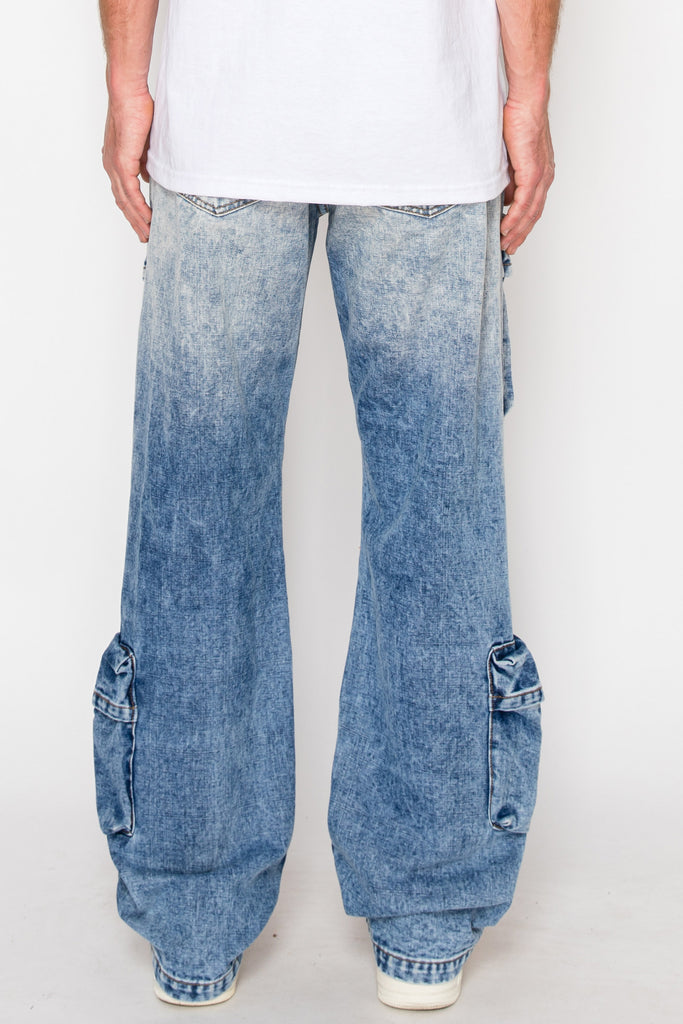 Baggy Fit Faded Wash Cargo Jeans