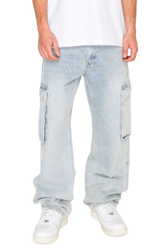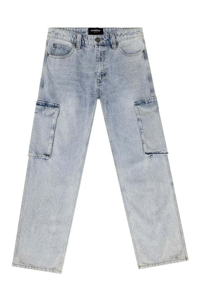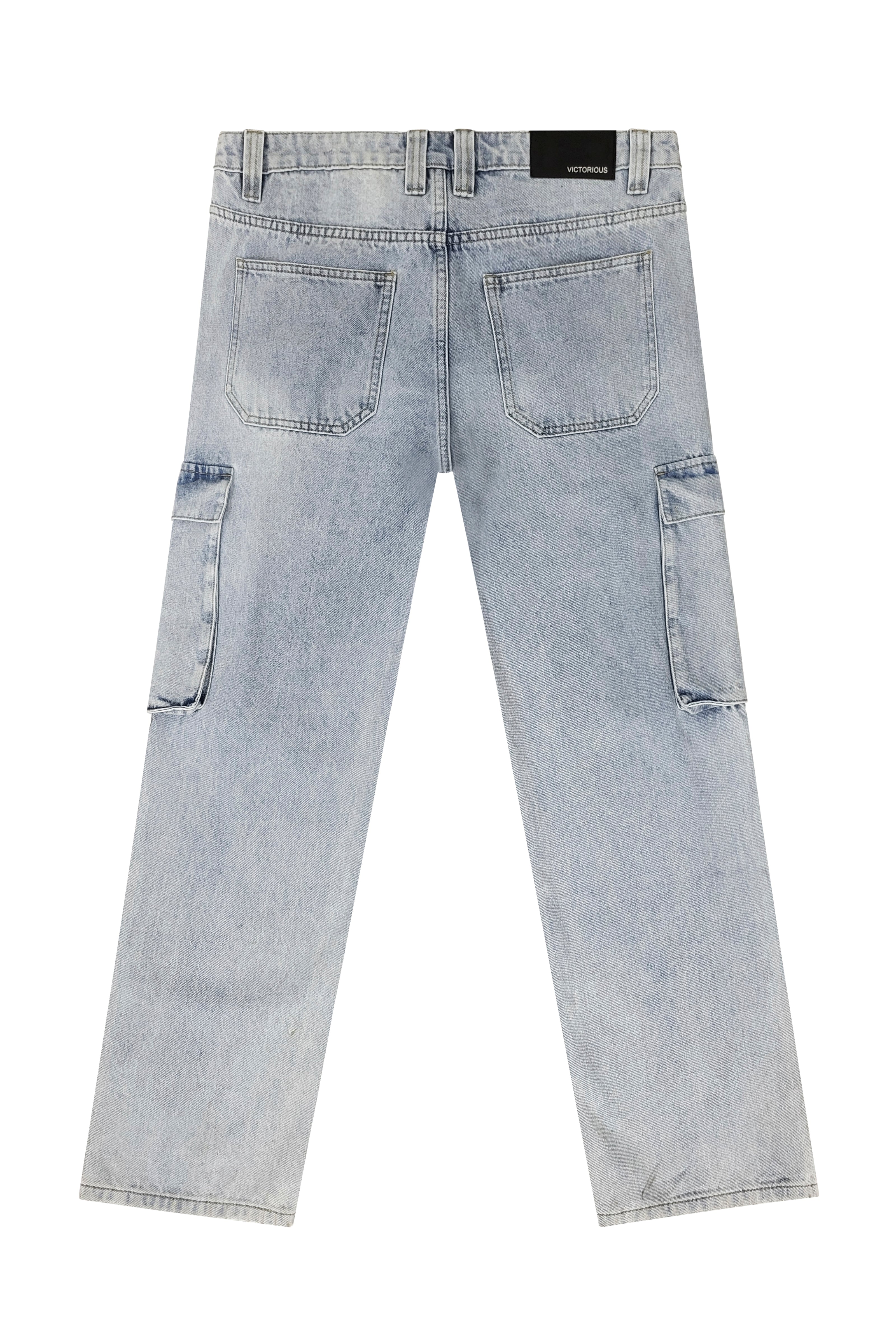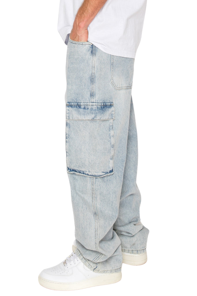 Crafted from heavyweight cotton denim, these cargo jeans are built for durability and everyday wear. Designed with a straight wide leg and a clean, washed finish, they deliver a bold street silhouette that stands out in any fit. The relaxed baggy cut gives natural stacking and easy movement while maintaining structure thanks to the thick denim.