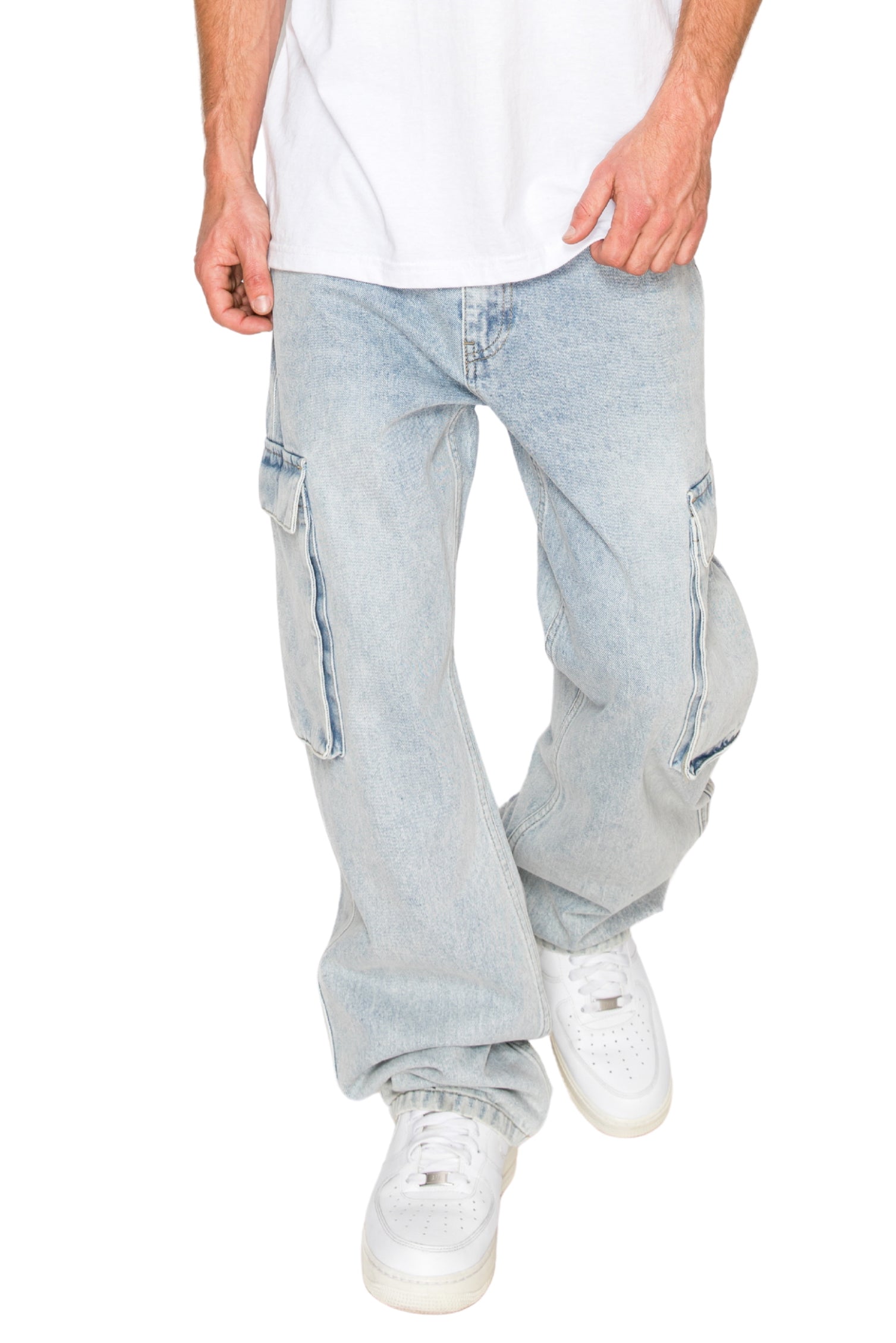 Dual side cargo pockets add utility and style, making these jeans a versatile option for both casual and elevated looks.